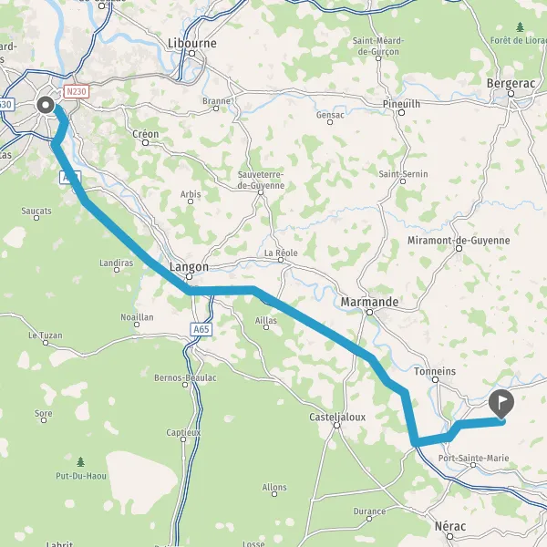 Prendre à gauche et rejoindre A62 E72. Continuer sur 92 kilomètres