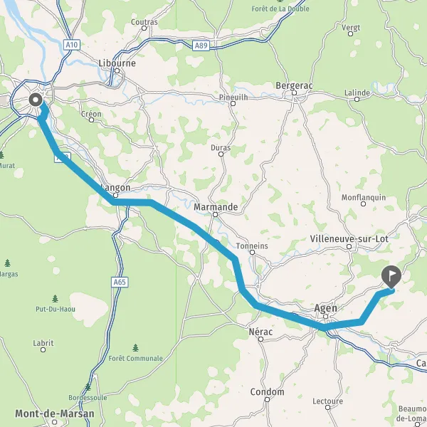 Prendre à gauche et rejoindre A62 E72. Continuer sur 123 kilomètres