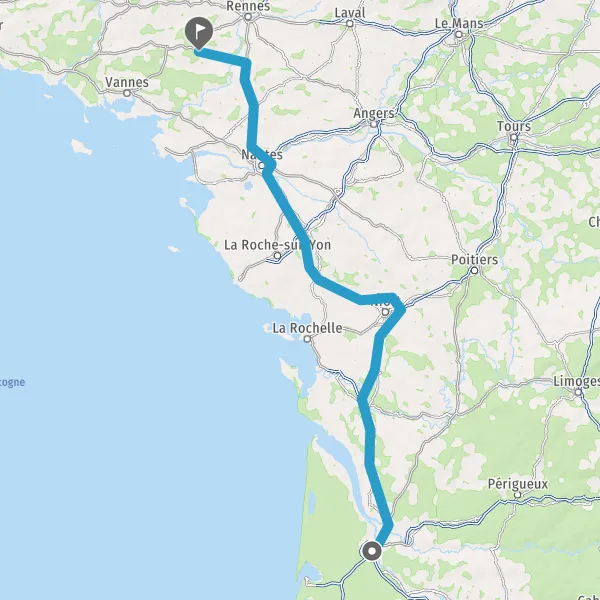 Prendre à droite et rejoindre A83. Continuer sur 150 kilomètres