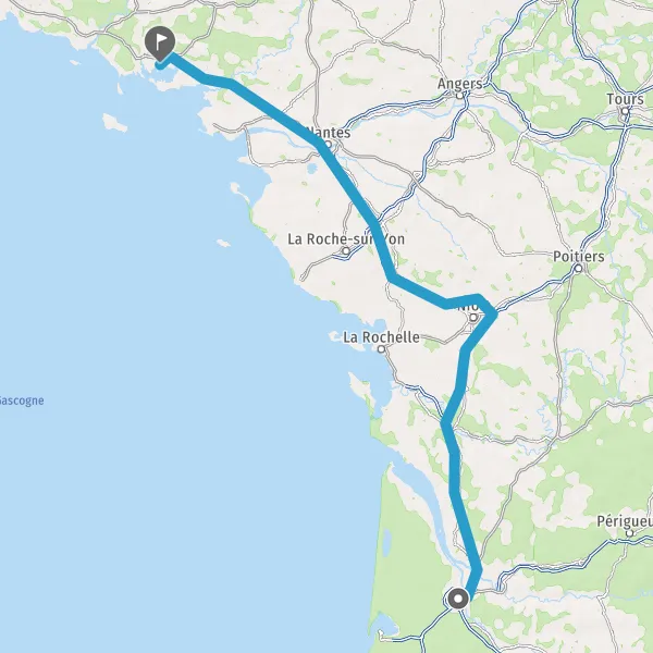 Prendre à droite et rejoindre A83. Continuer sur 150 kilomètres