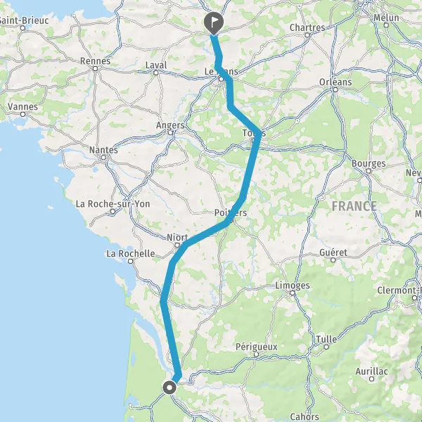 Continuer E5 (L'Aquitaine) sur 328 kilomètres