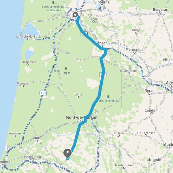 Sortir et rejoindre D933s (Avenue de Saint-Sever). Continuer sur 550 mètres