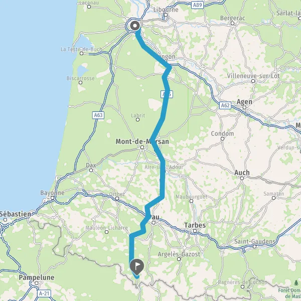 Prendre à droite et rejoindre A65. Continuer sur 149 kilomètres