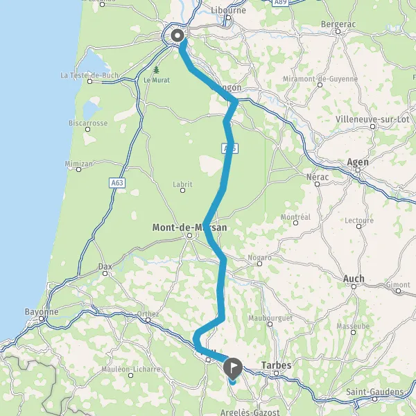 Prendre à droite et rejoindre A65. Continuer sur 149 kilomètres
