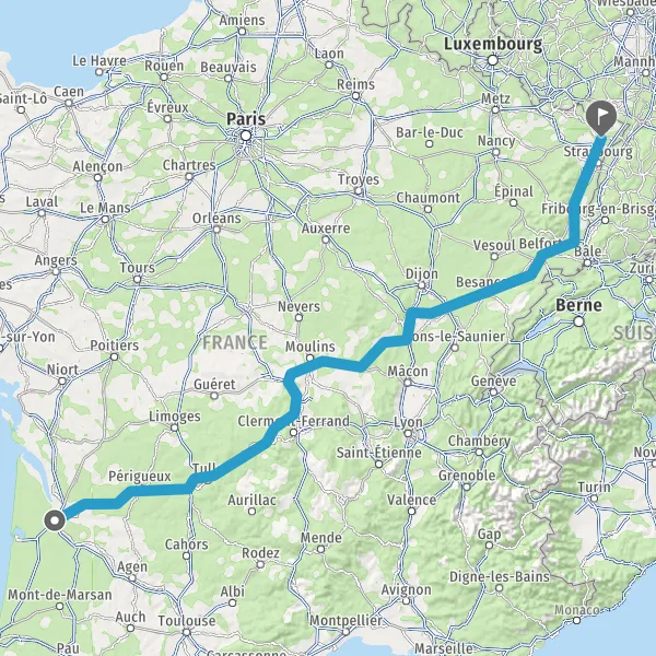 Prendre à droite et rejoindre A36. Continuer sur 225 kilomètres