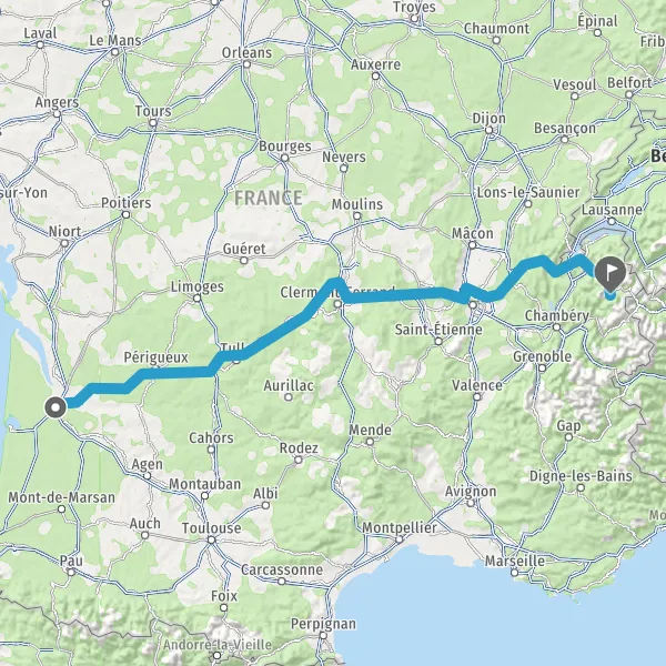 Prendre à droite et rejoindre A43 E70. Continuer sur 19 kilomètres