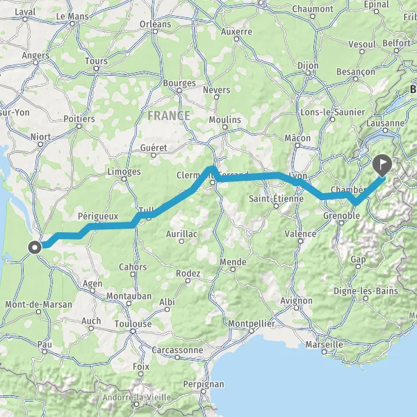 Prendre à droite et rejoindre E712 E70 (E70). Continuer sur 550 mètres