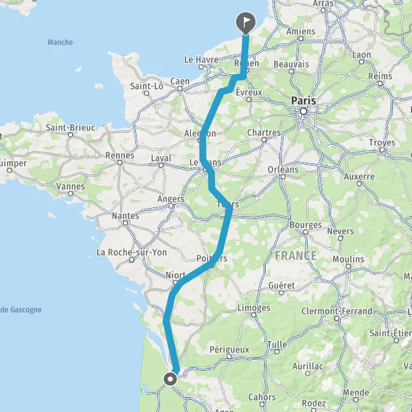 Continuer E5 (L'Aquitaine) sur 328 kilomètres