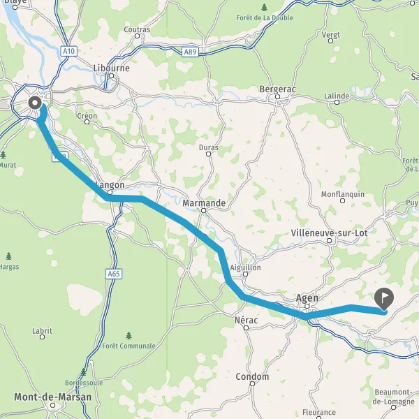 Prendre à gauche et rejoindre A62 E72. Continuer sur 123 kilomètres