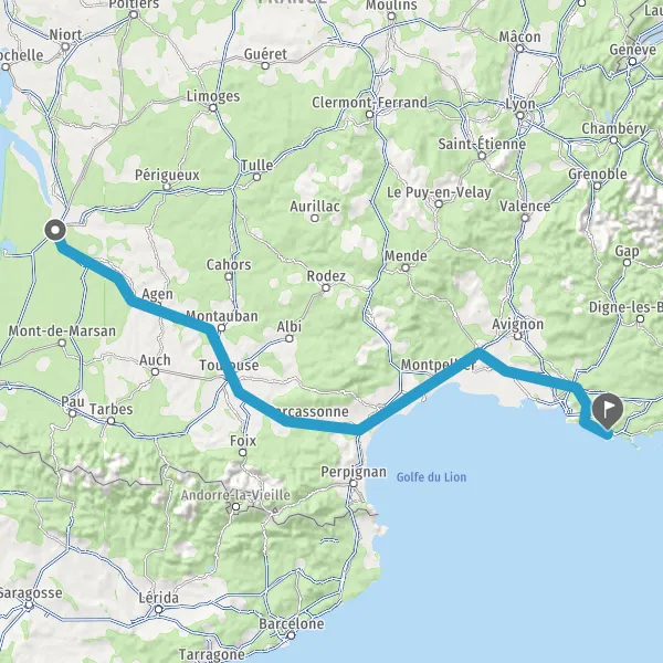 Prendre à gauche et rejoindre A62 E72. Continuer sur 224 kilomètres