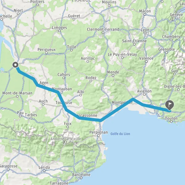 Prendre à gauche et rejoindre A62 E72. Continuer sur 224 kilomètres