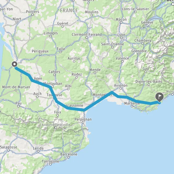 Prendre à gauche et rejoindre A62 E72. Continuer sur 224 kilomètres