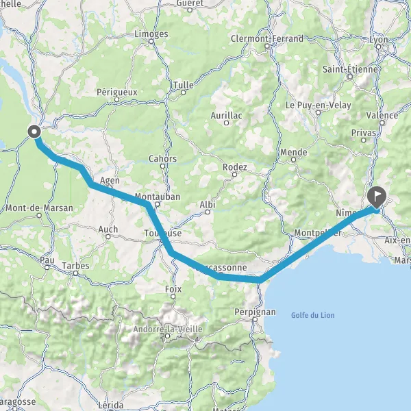 Prendre à gauche et rejoindre A62 E72. Continuer sur 224 kilomètres