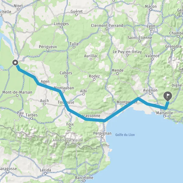 Prendre à gauche et rejoindre A62 E72. Continuer sur 224 kilomètres