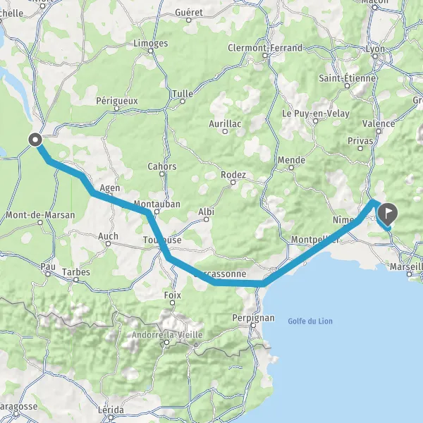 Prendre à gauche et rejoindre A62 E72. Continuer sur 224 kilomètres