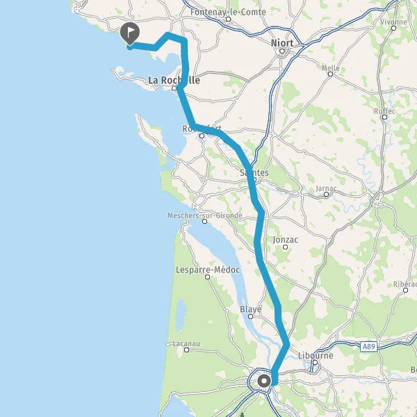 Continuer et rejoindre A837 E602. Continuer sur 34 kilomètres