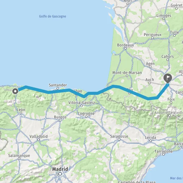 Prendre à droite et rejoindre A-64. Continuer sur 194 kilomètres