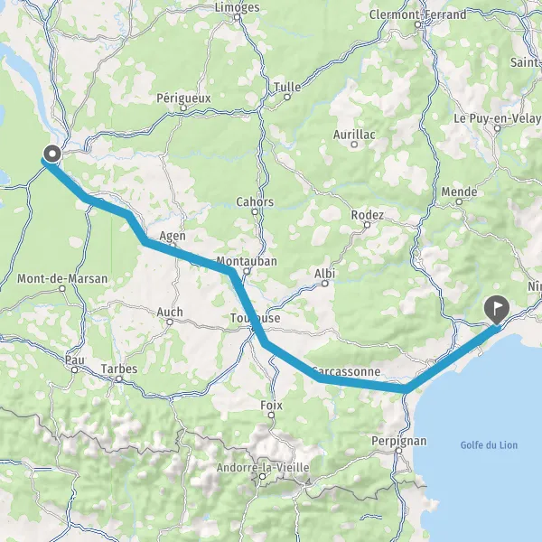 Prendre à gauche et rejoindre A62 E72. Continuer sur 224 kilomètres