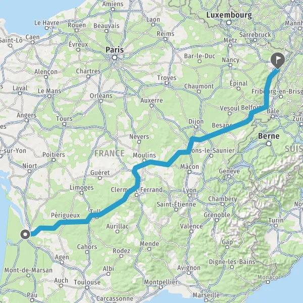 Prendre à droite et rejoindre A36. Continuer sur 225 kilomètres