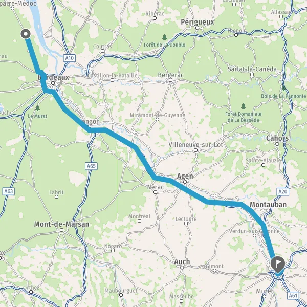 Prendre à gauche et rejoindre A62 E72. Continuer sur 224 kilomètres
