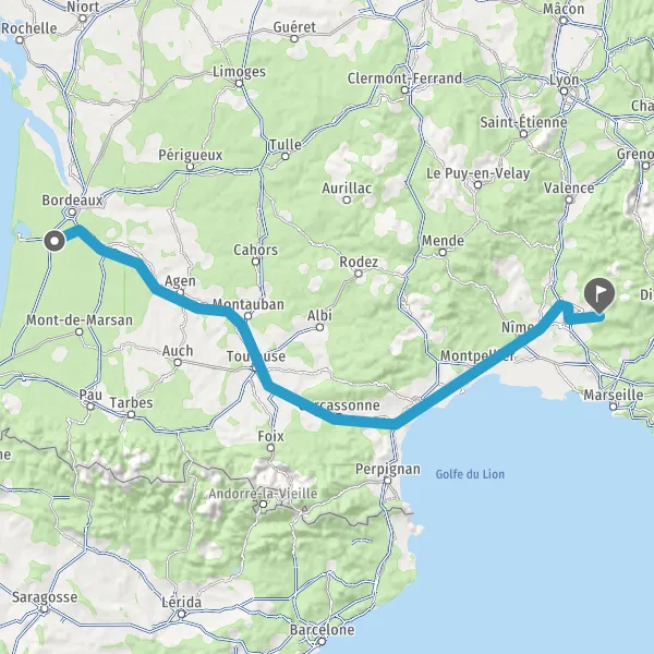 Prendre à droite et rejoindre A62 E72. Continuer sur 213 kilomètres