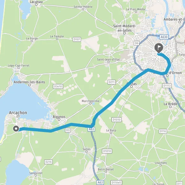 Avec le mode voiture, vous pouvez configurer vos options (type de véhicule, autoroute ou non, péage ou non, distance la plus courte), tout en ayant accès aux infos de circulation grâce à notre service d'info-trafic en temps réel. Ainsi faites des économies sur le coût ou la durée de votre voyage, en trouvant le trajet La Teste-de-Buch Bordeaux adapté à vos besoins.