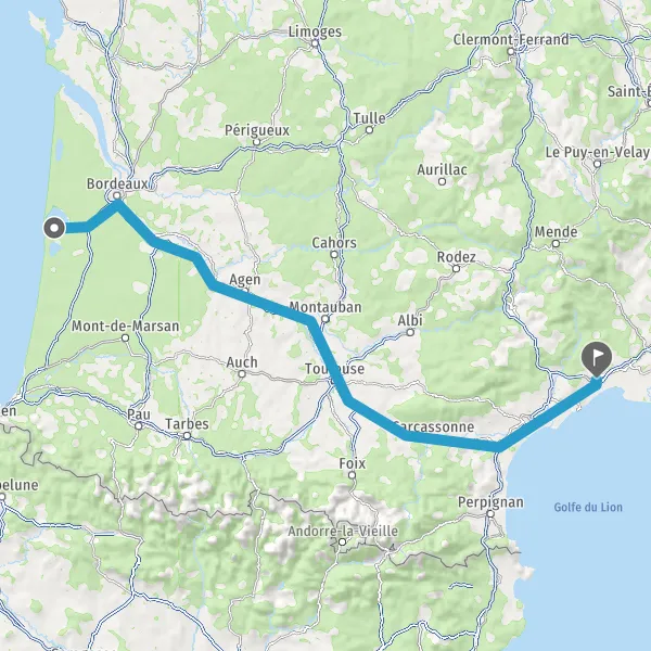 Prendre à gauche et rejoindre A62 E72. Continuer sur 224 kilomètres