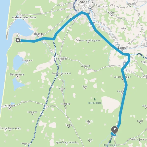 Au rond-point, prendre la 1ère sortie sur D652 (Route de Sanguinet) et continuer sur 6,8 kilomètres