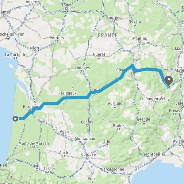 Prendre à gauche et rejoindre A63 E5 E70. Continuer sur 26 kilomètres