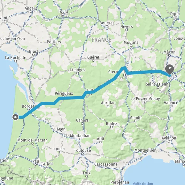 Avec le mode voiture, vous pouvez configurer vos options (type de véhicule, autoroute ou non, péage ou non, distance la plus courte), tout en ayant accès aux infos de circulation grâce à notre service d'info-trafic en temps réel. Ainsi faites des économies sur le coût ou la durée de votre voyage, en trouvant le trajet La Teste-de-Buch Lyon adapté à vos besoins.
