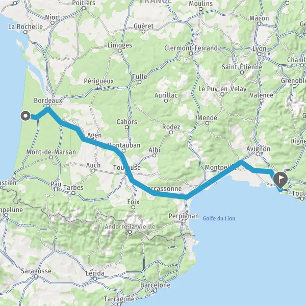 Prendre à gauche et rejoindre A62 E72. Continuer sur 224 kilomètres