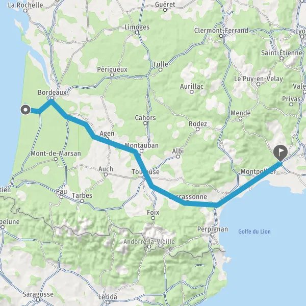 Prendre à gauche et rejoindre A62 E72. Continuer sur 224 kilomètres