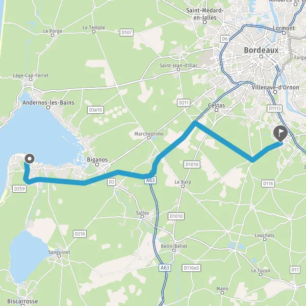 Tourner à gauche sur D108 (Avenue Joseph-Henri Lainé) et continuer sur 5,9 kilomètres