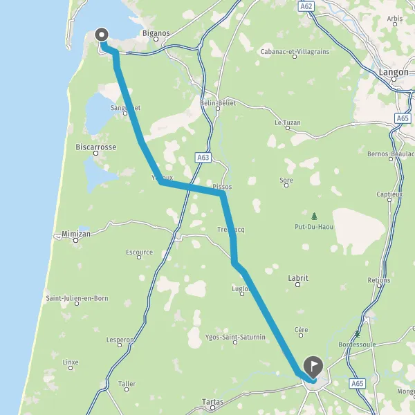Tourner légèrement à droite sur D634 (Avenue de Sabres) et continuer sur 1,6 kilomètre