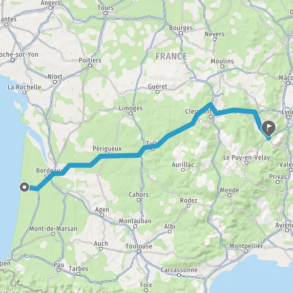 Prendre à gauche et rejoindre A63 E5 E70. Continuer sur 26 kilomètres