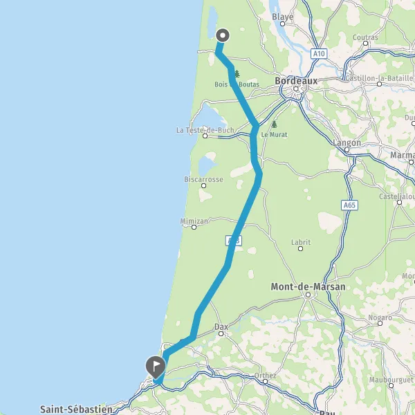 Prendre à droite et rejoindre A63 E5 E70. Continuer sur 150 kilomètres