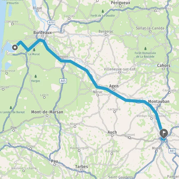 Prendre à gauche et rejoindre A62 E72. Continuer sur 224 kilomètres