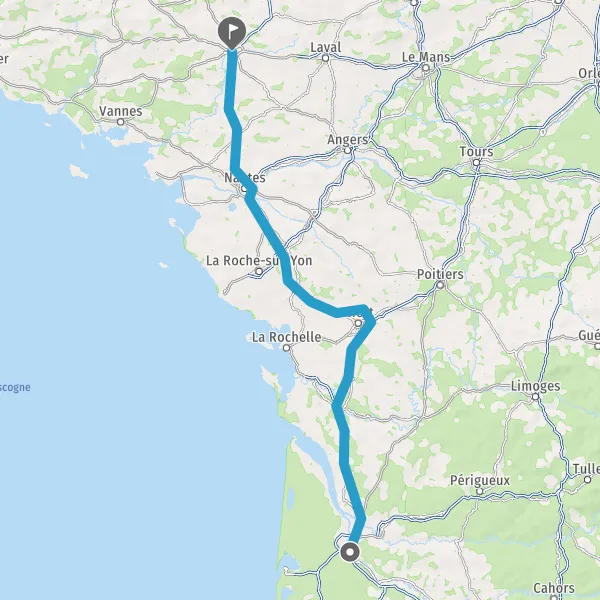 Prendre à droite et rejoindre A83. Continuer sur 150 kilomètres