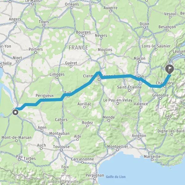 Prendre à droite et rejoindre A43 E711 E70. Continuer sur 21 kilomètres