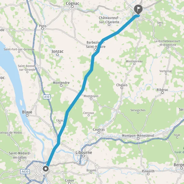 Prendre à droite et rejoindre Rue de Montmoreau. Continuer sur 120 mètres
