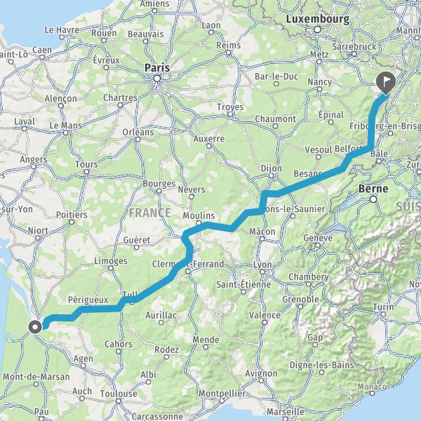 Prendre à droite et rejoindre A36. Continuer sur 225 kilomètres