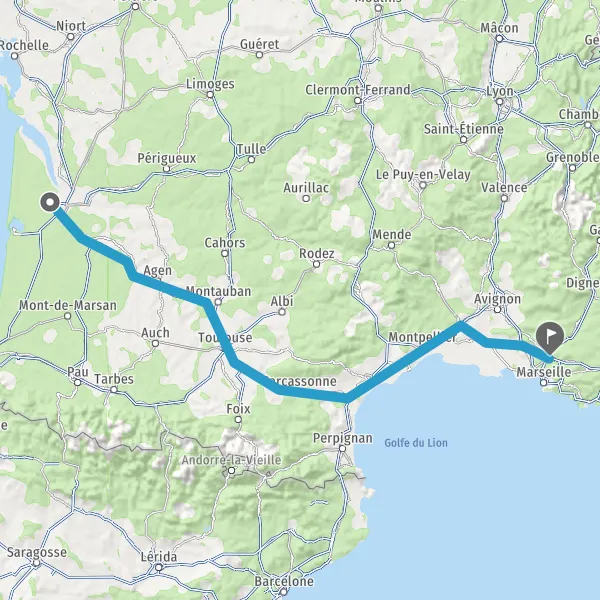 Prendre à gauche et rejoindre A62 E72. Continuer sur 224 kilomètres
