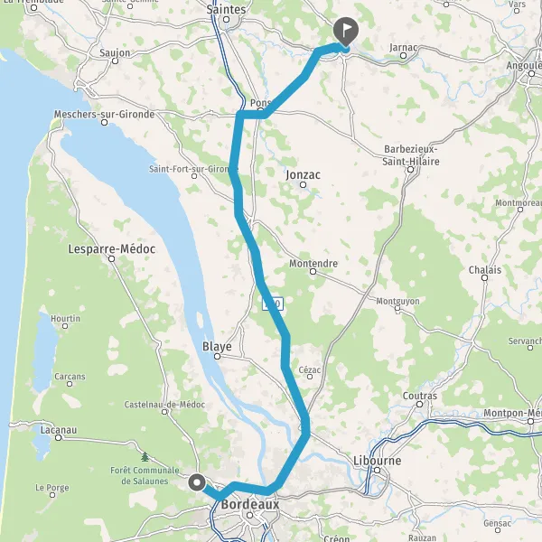 Au rond-point, prendre la 3ème sortie sur D732 (Route de Gémonzac) et continuer sur 2,7 kilomètres
