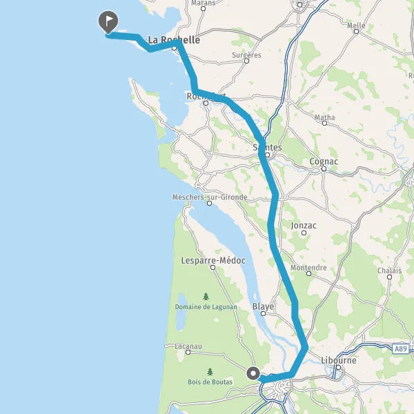 Continuer et rejoindre A837 E602. Continuer sur 34 kilomètres