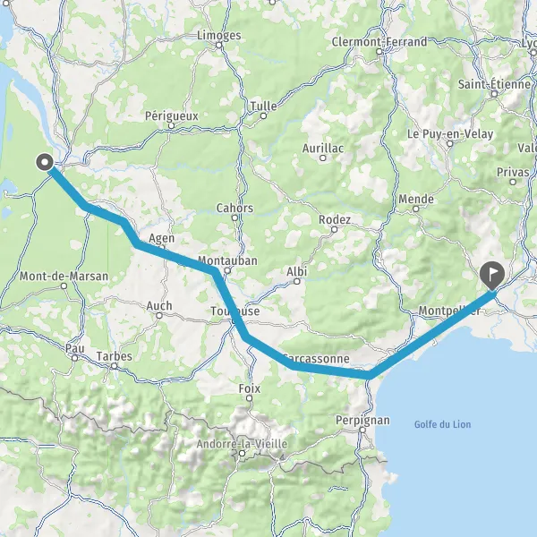 Prendre à gauche et rejoindre A62 E72. Continuer sur 224 kilomètres