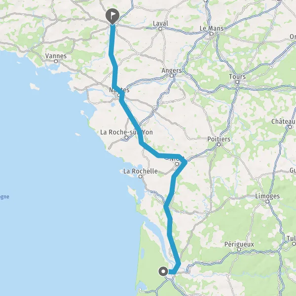 Prendre à droite et rejoindre A83. Continuer sur 150 kilomètres