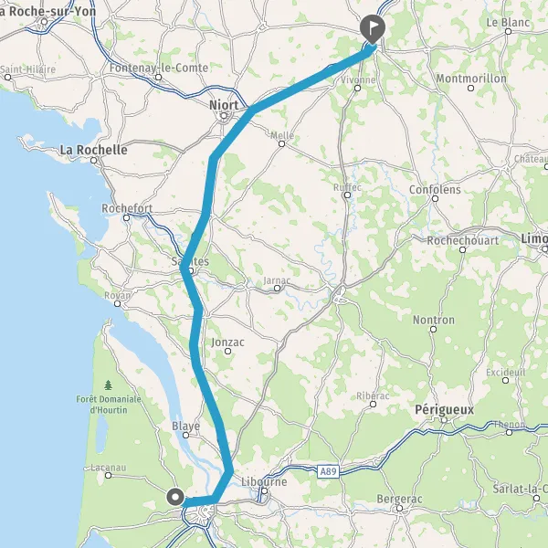 Continuer E5 (L'Aquitaine) sur 215 kilomètres