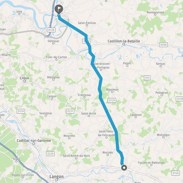Au rond-point, prendre la 2ème sortie sur D670 (Route de Saint-Émilion) et continuer sur 3,2 kilomètres