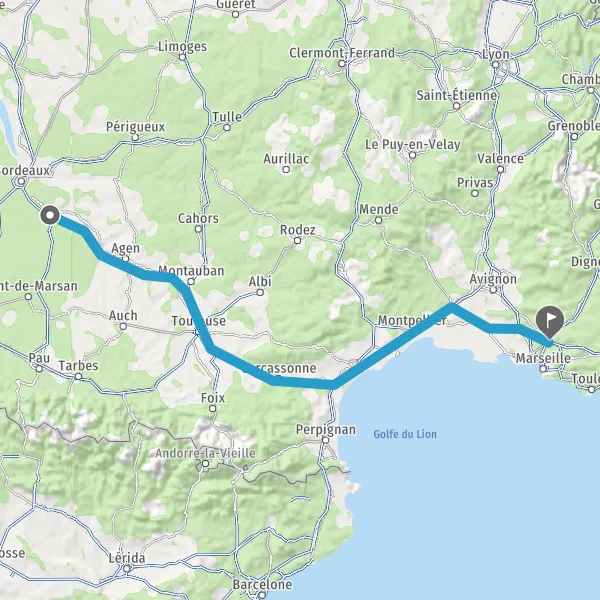 Avec le mode voiture, vous pouvez configurer vos options (type de véhicule, autoroute ou non, péage ou non, distance la plus courte), tout en ayant accès aux infos de circulation grâce à notre service d'info-trafic en temps réel. Ainsi faites des économies sur le coût ou la durée de votre voyage, en trouvant le trajet Langon Aix-en-Provence adapté à vos besoins.