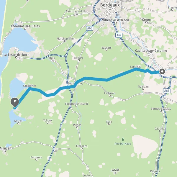 Au rond-point, prendre la 3ème sortie sur D652 (Route de Biscarrosse) et continuer sur 8,7 kilomètres